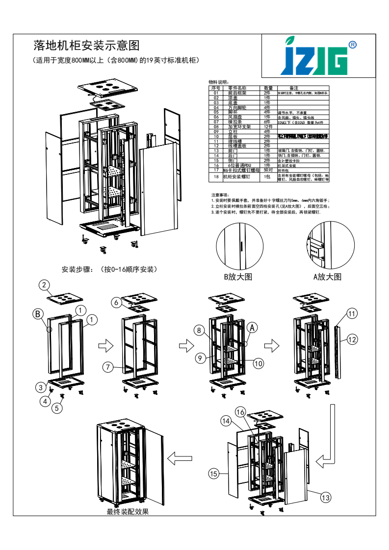 機(jī)柜配件明細(xì)-安裝步驟說(shuō)明