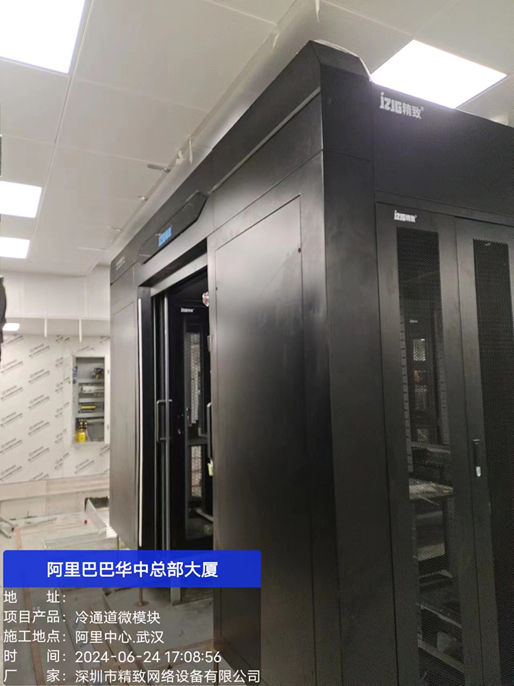 在阿里巴巴華中總部的建設(shè)中,深圳市精致網(wǎng)絡(luò)設(shè)備有限公司以精致的工藝和卓越的品質(zhì),為其打造了冷通道微模塊機(jī)柜解決方案。