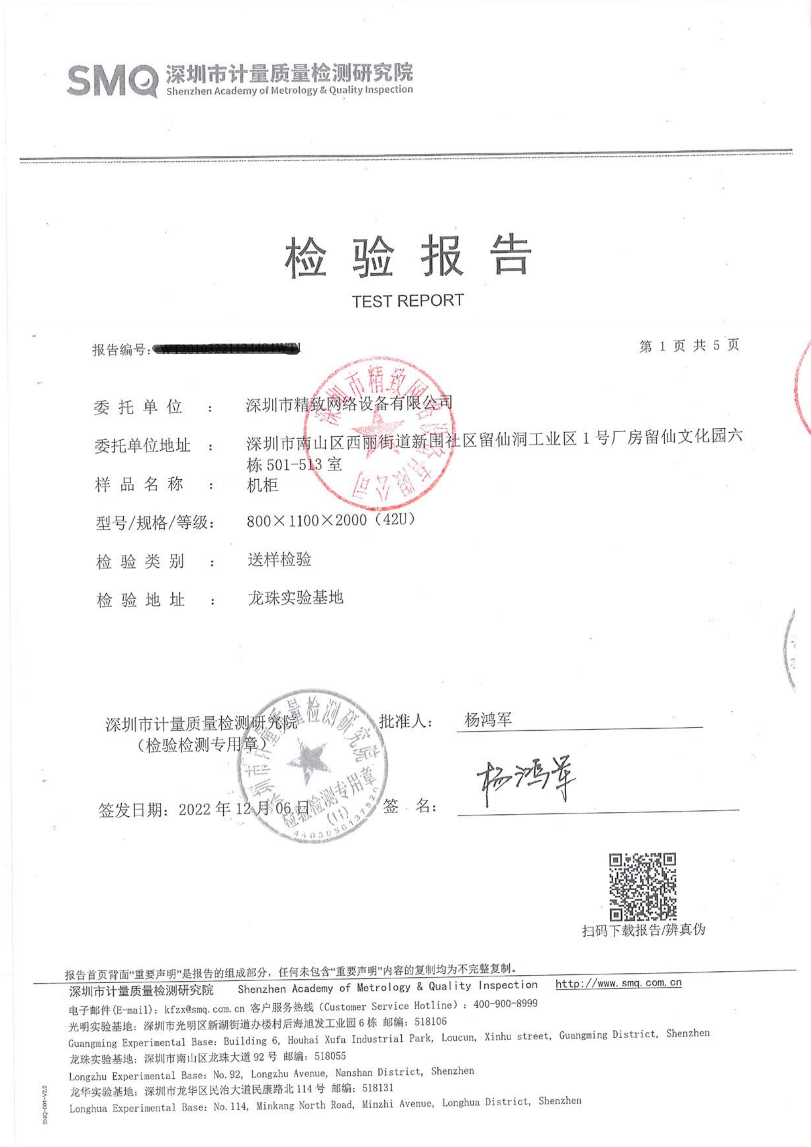 精致森藍(lán)機(jī)柜G型材機(jī)柜檢測報(bào)告